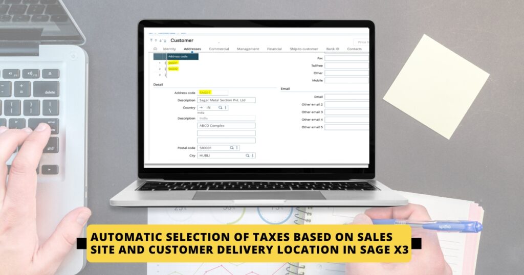 In Sage X3, user can enter a tax manually for any Sales transactions. But automatically selection of taxes while creating Sales transactions on the basis of sales site and customer delivery location. on customer master and Sales transaction screens. Refer the below example for better understanding: