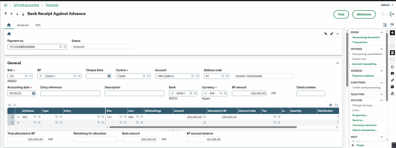 - Post the payment.