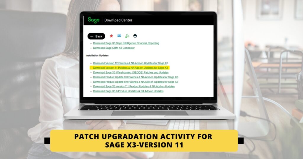Note: You should check patch information before starting the activity and upgrading patch one by one i.e. 18 to 19,19 to 20….is recommended for Sage X3 version 11.