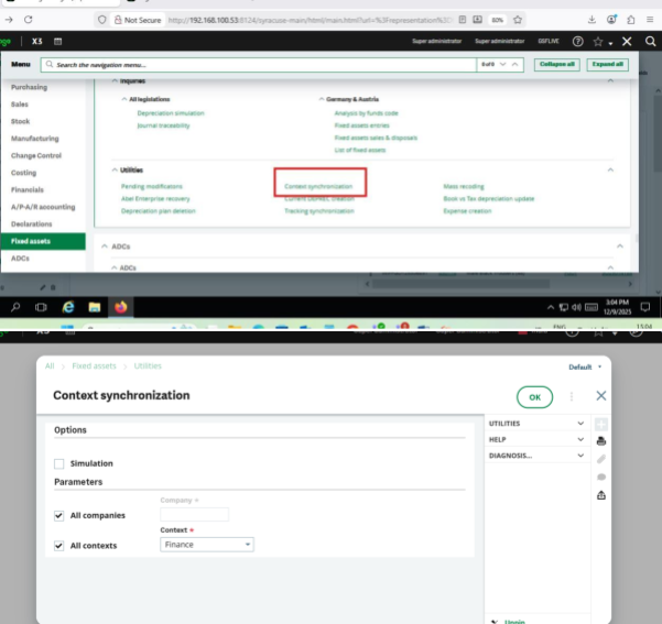 - Perform Context Synchronization via Utilities → Synchronization.