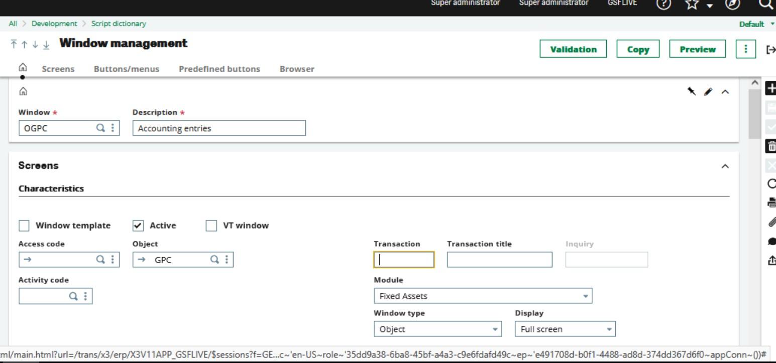 - Validate the Accounting Entry screen for Asset.