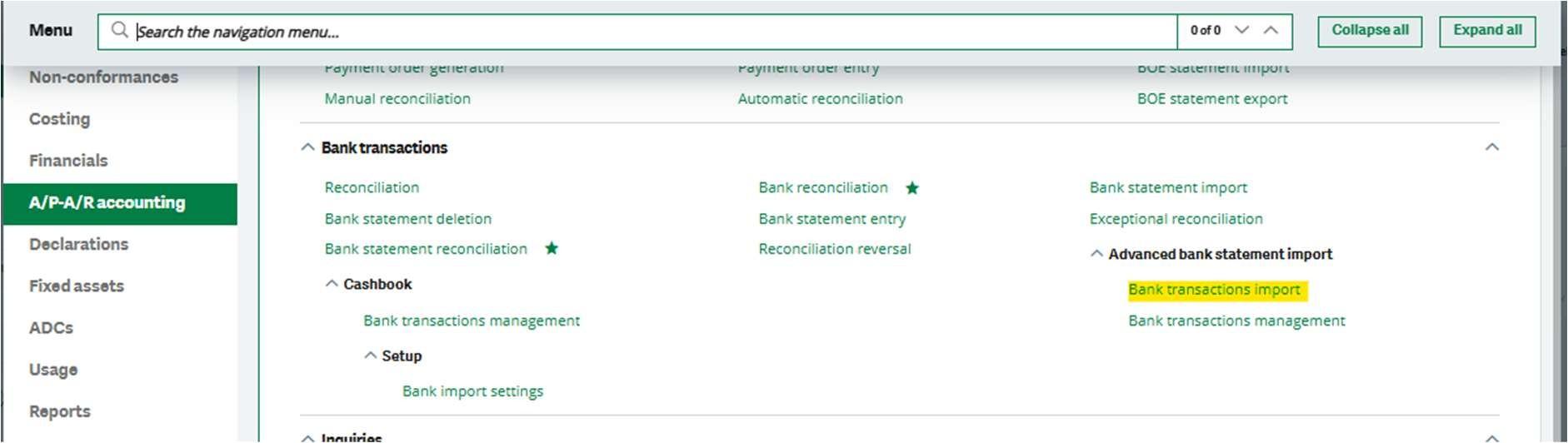 Bank Statement Import is a robust, out-of-the-box bank reconciliation function that lets you upload electronic bank statements from your bank into Sage X3, instead of typing bank transactions manually.