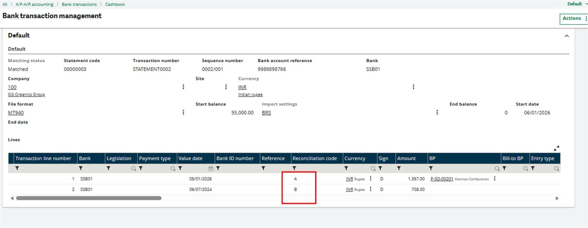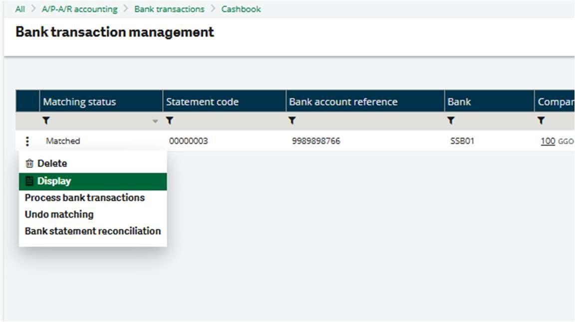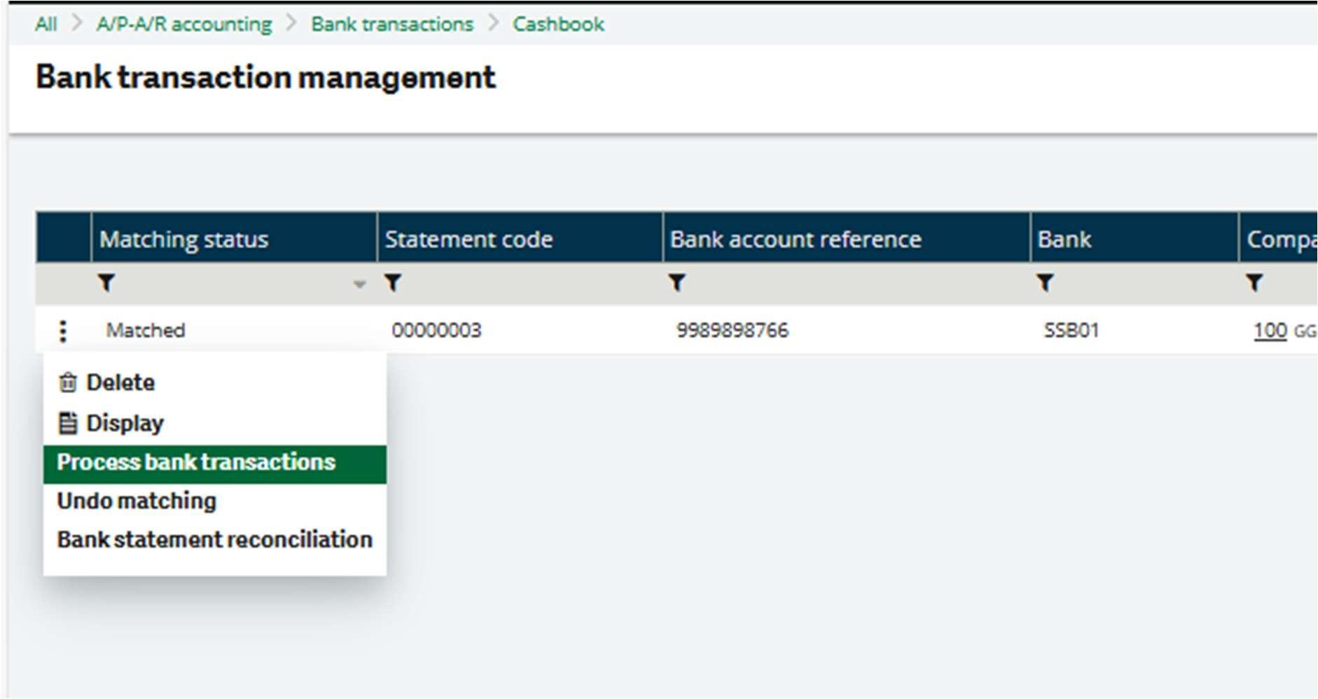 Click on Process bank transactions to go to the Process bank transactions function. This is the main screen to work with the Bank statement