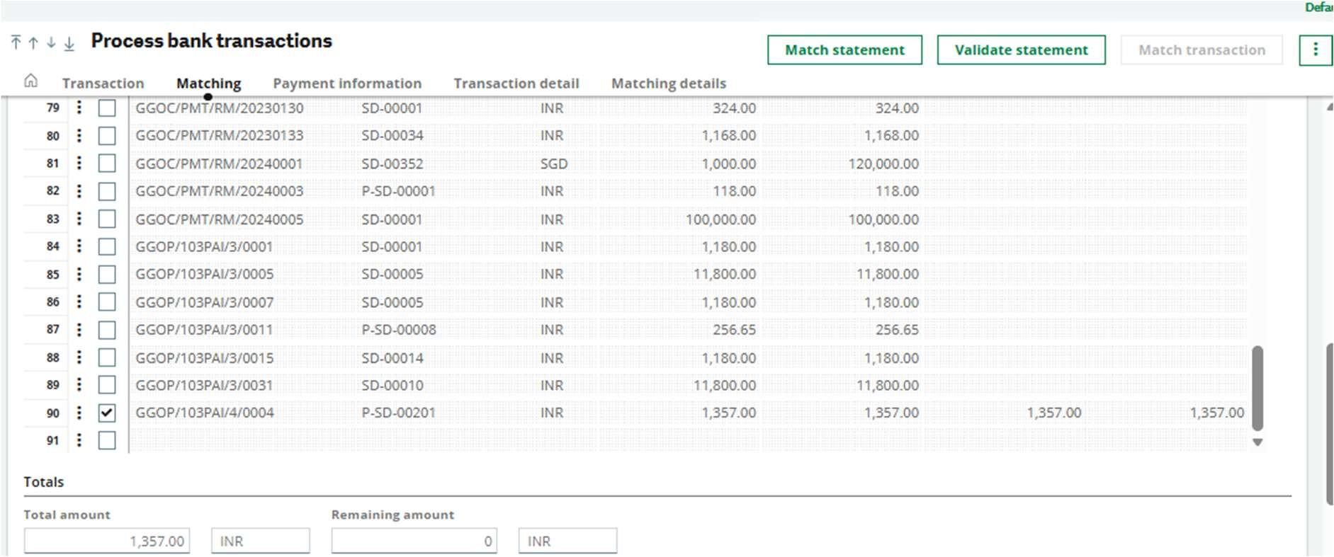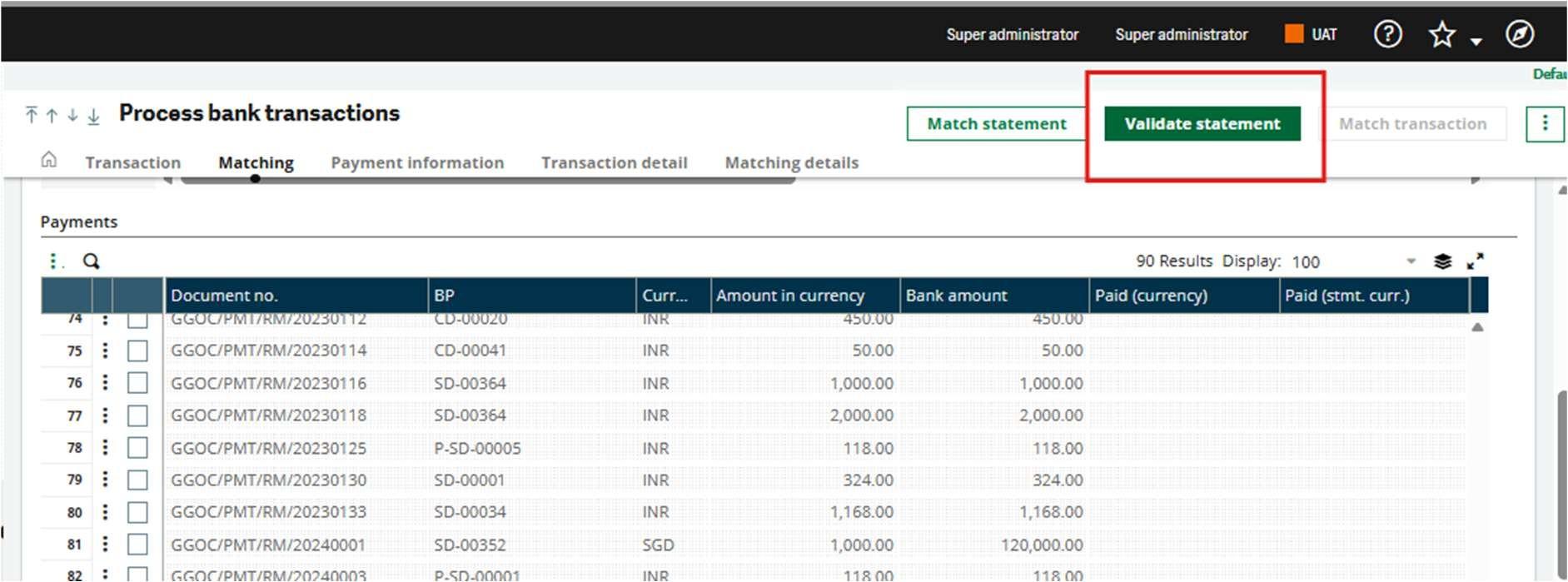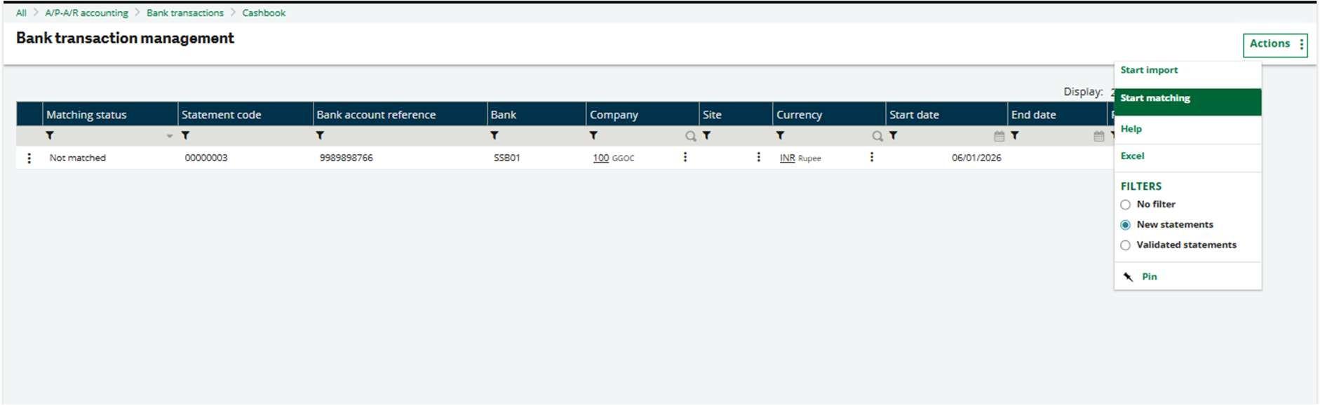Here, you can click on Refresh, and then the entries in the statement will appear on the left side.