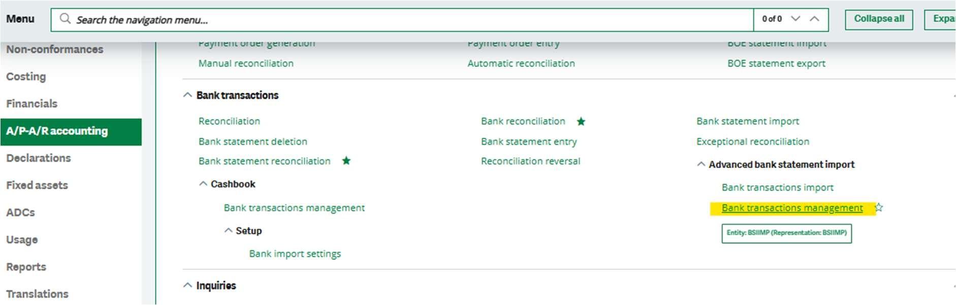 Using the Advanced Bank Reconciliation Statement in Sage X3