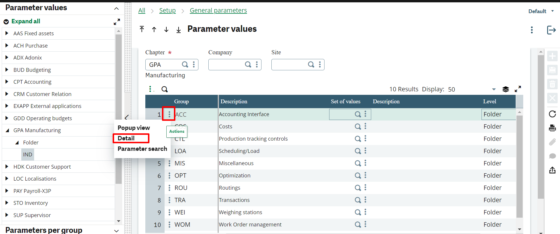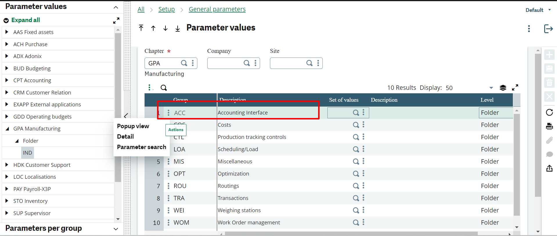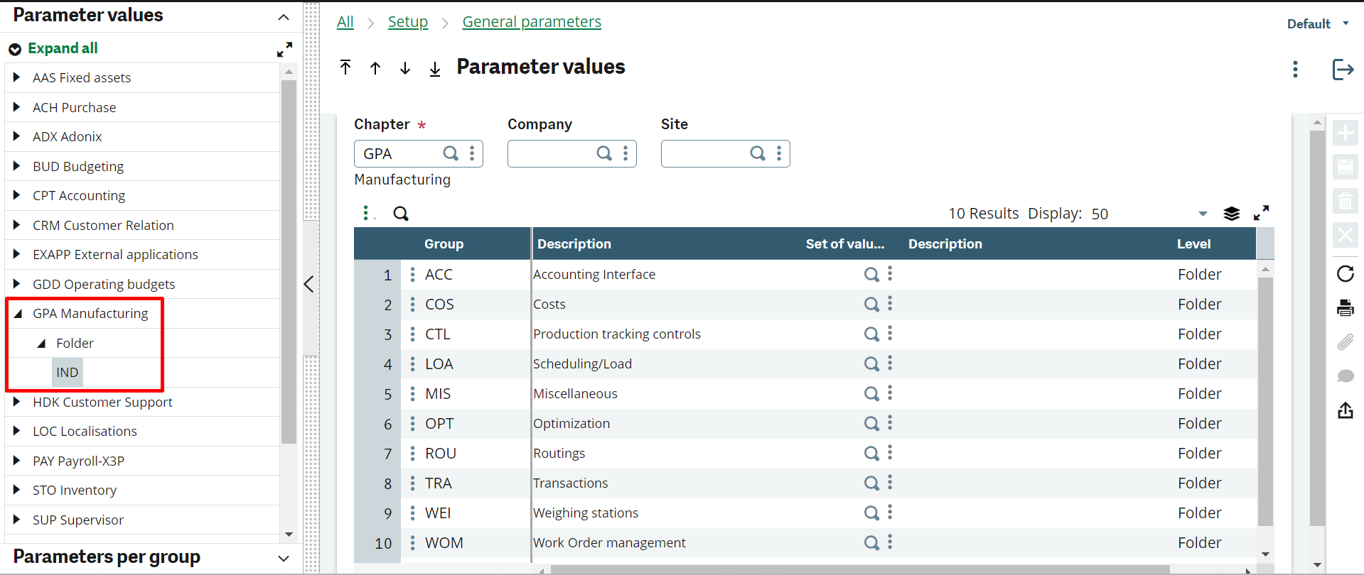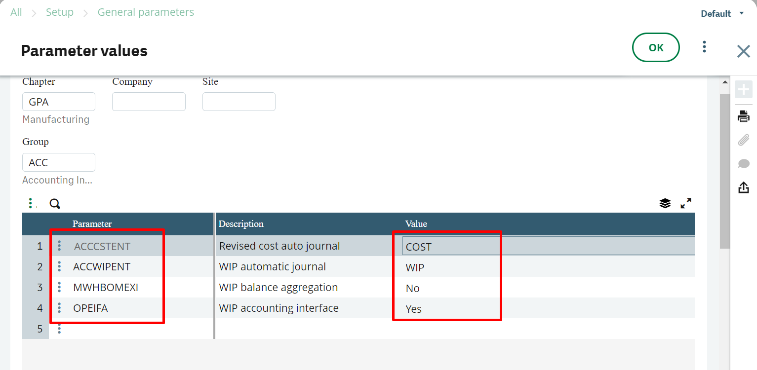 Check parameter values for the GPA Chapter manufacturing: