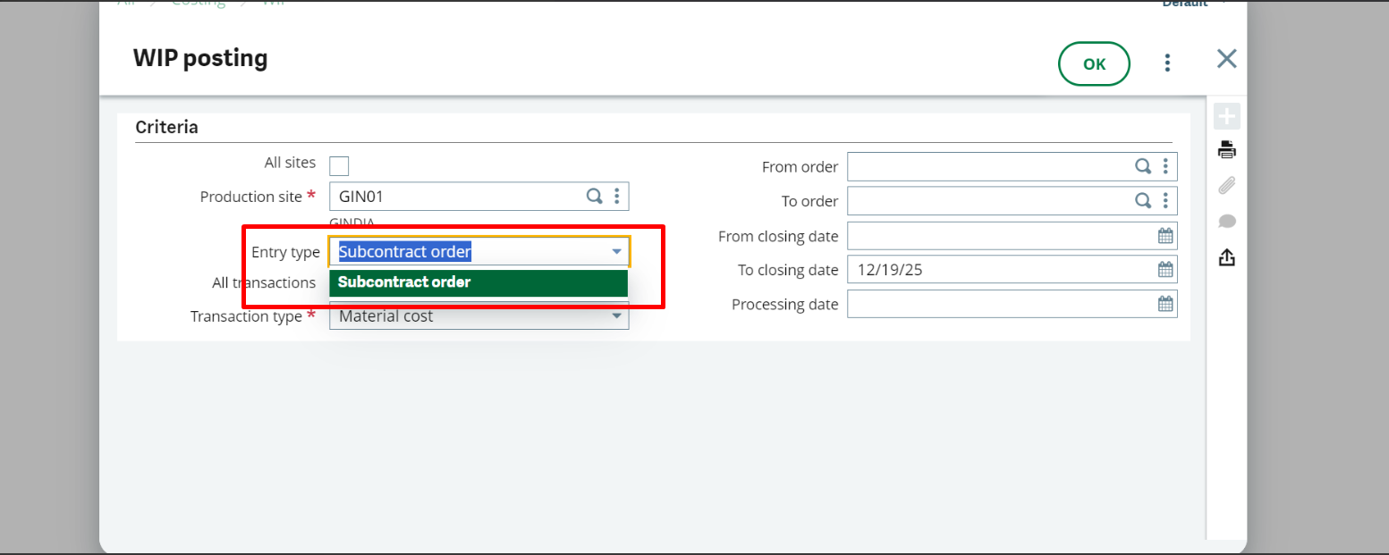By completing the steps outlined above, all the entry types will display correctly on the WIP Posting screen, ensuring a smooth posting experience. Maintaining accurate configuration in Sage X3 helps prevent similar issues and ensures consistent system performance.