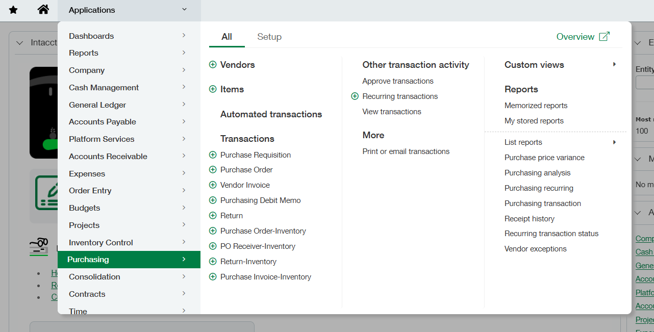 The purchasing module provides end-to-end management of the procurement process, facilitating full controls and auditability. It helps companies standardize and track all purchasing activities. Sage Intacct integration will allow you to automate and improve procure-to-pay cycle and customize approval workflows.
