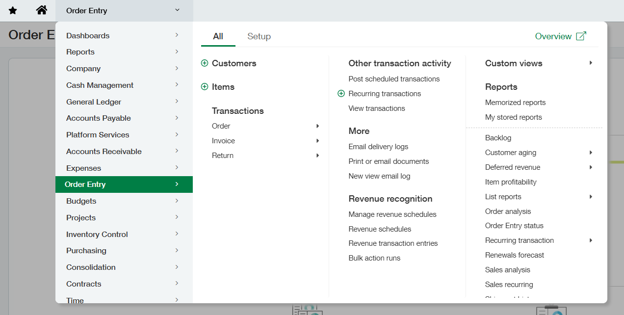 Order Entry in the Sage Intacct for SaaS industry is used to manage customer orders and sales processes. Ideal for businesses that sell products or have structured sales cycles. Provides advanced batch tasking, revenue recognition, and accurate financial recording.